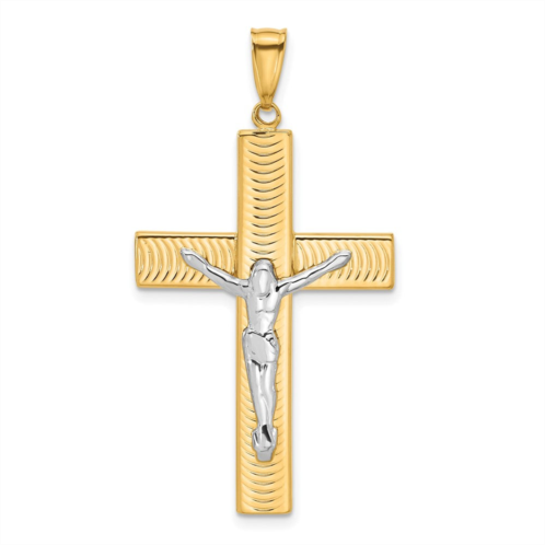 [US] Diamond2Deal 14k two-tone gold polished and textured crucifix pendant