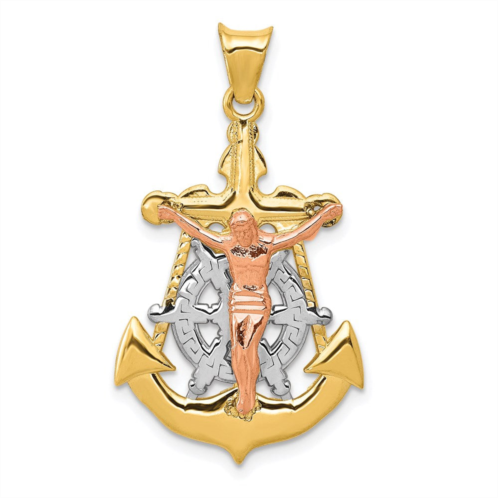 [US] Diamond2Deal 14k tri-color gold mariner crucifix pendant
