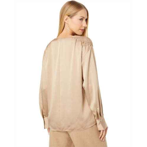 Look graceful and elegant wearing the gaze-worthy Vince Smocked Long Sleeve Blouse.