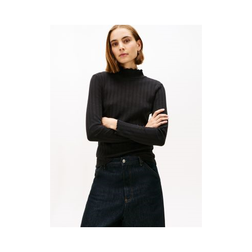 [US] TOMMY HILFIGER Lettuce-Trim Pointelle Turtleneck T-Shirt