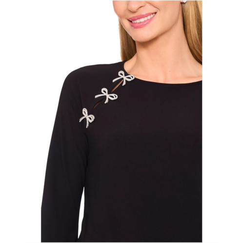 [US] CeCe Pearl Bow Applique Long Sleeve Knit Top