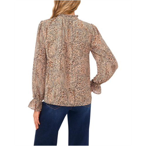 [US] CeCe Long Sleeve Leopard Ruffled Top