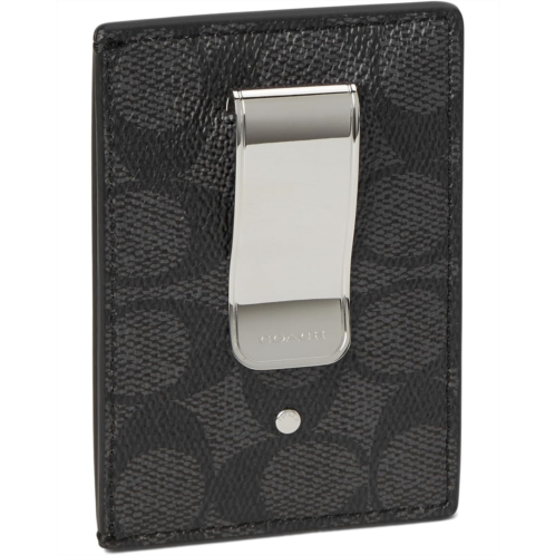 - Designed for convenience, COACH Money Clip Card Case In Signature Canvas features three credit card slots for cards and a money clip holder. Crafted from signature coated canvas and natural grain refined calf leather. This flap closure case has a slip pocket and polyester lining.