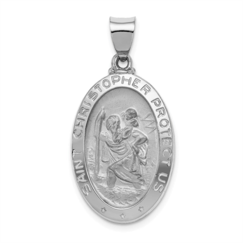 [US] Diamond2Deal 14k white gold polished satin st christopher medal hollow pendant
