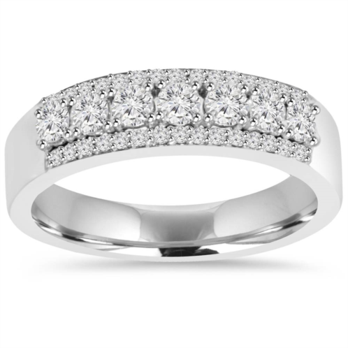 This womens ring features 37 round cut natural diamonds all set in solid 14k white gold.
