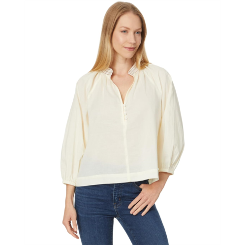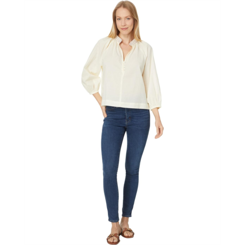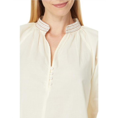 Bring a touch of sumptuous allure to your look wearing the Lilla P Easy Button Raglan Top. It has a split V-neckline with beautiful multi-color stitching around the sleek stand collar. With a rounded hem, the top features button detailing at the front and cuffs.