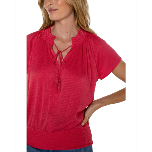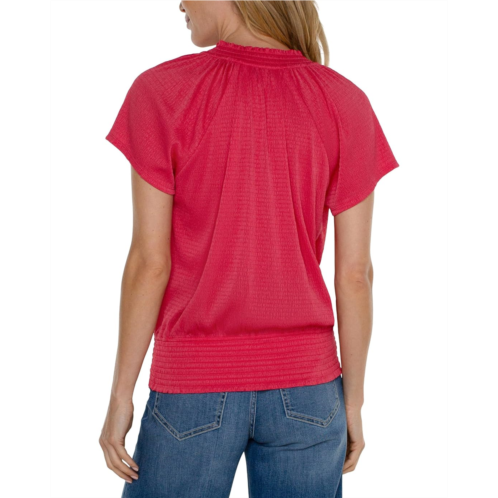 [US] Liverpool Los Angeles Short Sleeve Smocked Raglan Knit Top with Neck Tie