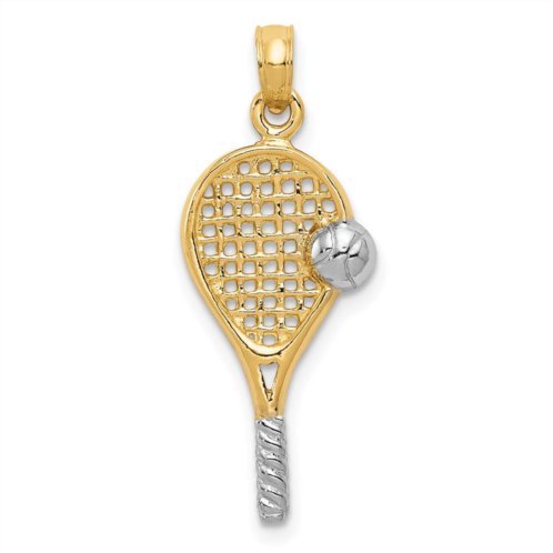 [US] Diamond2Deal 14k yellow gold rhodium polished tennis racquet pendant