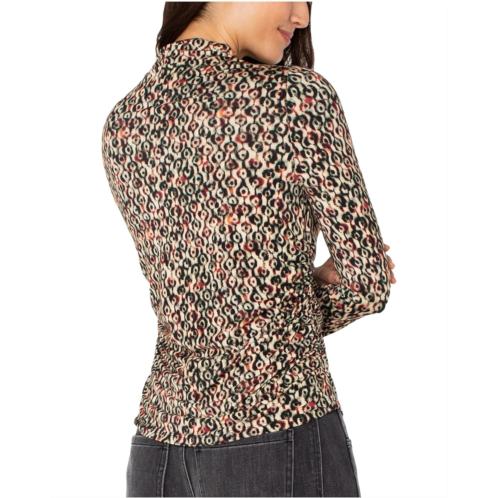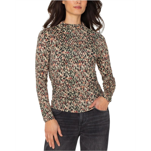 [US] Liverpool Los Angeles Long Sleeve Pleasted Mock Neck Knit Top with Shirring