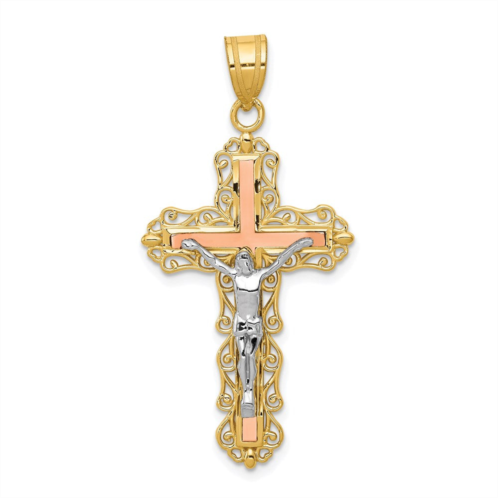 [US] Diamond2Deal 14k tri-color gold diamond-cut crucifix pendant