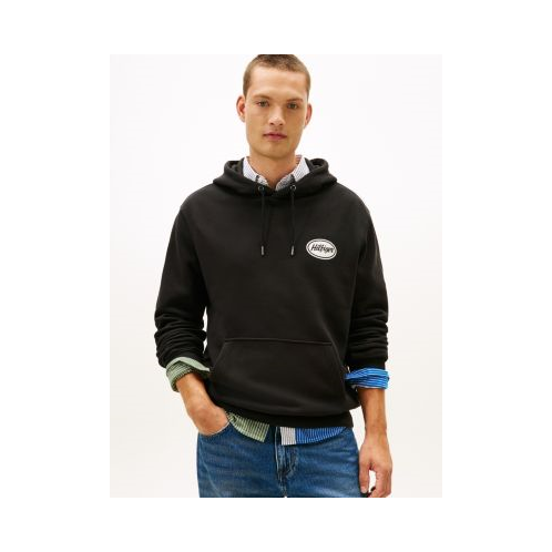 Tommy Hilfiger men's hoodie. Our latest hoodie is the perfect layering option for the cold weather season. It's made from heavyweight French terry cotton for warmth and comfort, and is finished with a retro service station graphic at the back.
