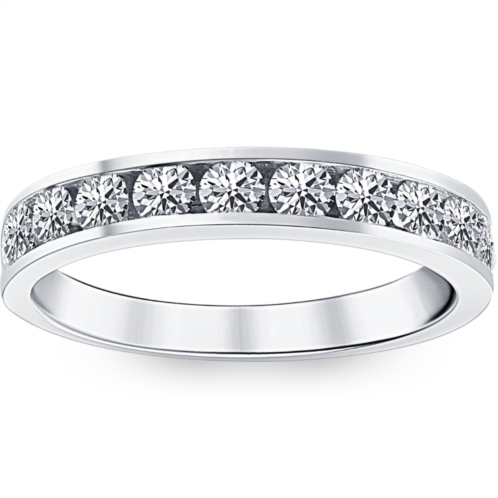 14K White Gold Diamond Wedding Band is adorned with 1 Carat of 11 Round, Brilliant Cut Natural Diamonds.