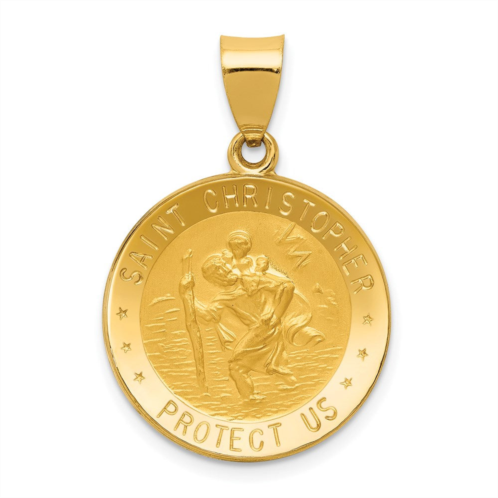 [US] Diamond2Deal 14k yellow gold polished and satin st. christopher medal hollow pendant