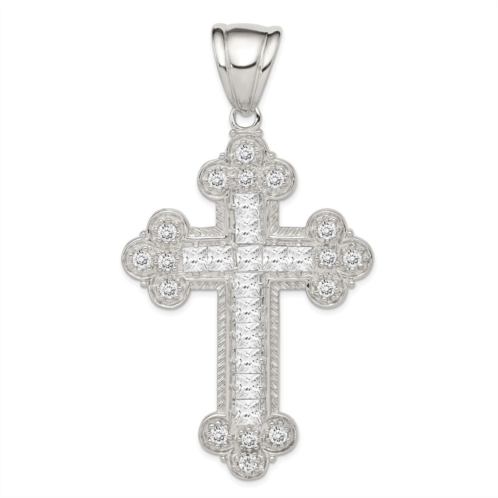 [US] Diamond2Deal sterling silver rhodium-plated cubic zirconia budded cross pendant