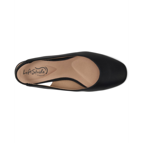 Lead the formal fashion league in style and sophistication wearing LifeStride Claire Slingback Ballet Flats. The slip-on footwear features soft polyurethane upper construction and slingback strap closure with added gore for a premium fit. With a lightweight and flexible design, the low-top pair has closed square toe silhouette.