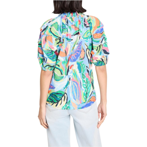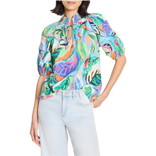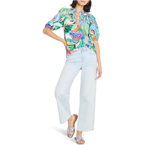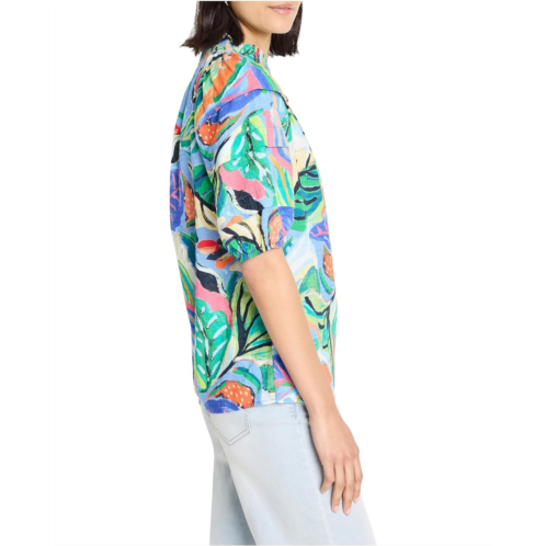 The NIC+ZOE Island Beat Top pairs perfectly with a white sand beach--or for transforming your next run to the market with the welcome addition of some vacation vibes. The Island Beat print has never been more at home than in this easy blouse inspired by classic tropical wear. Smocked neckline, pleated puffy sleeve, and the elastic cuff combine to create a shape that oozes tropical charm.