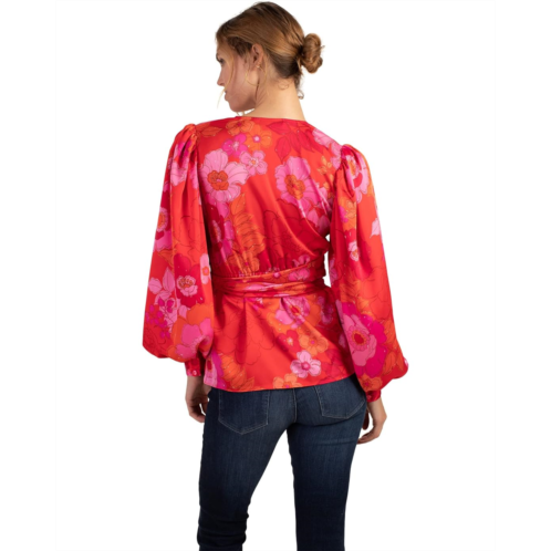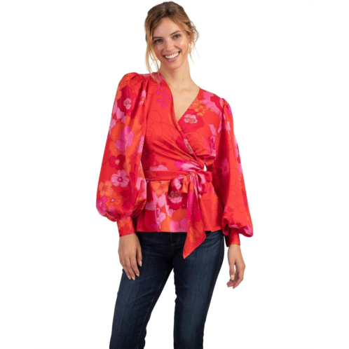 Dress for the party in the floral print surplice neckline Trina Turk Aquatic Top and enjoy the ease offered with the wrap silhouette.