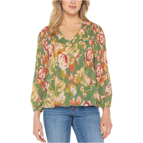 Make a statement and stand out with effortless grace when wearing the exquisite Liverpool Los Angeles Long Sleeve V-neck Pleated Top featuring pleats and a vibrant floral pattern. This versatile piece can be dressed up or down for a stunning and sophisticated look.