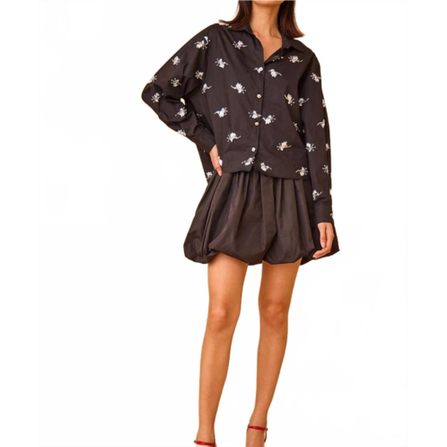 Show just the right amount of leg in this fit flattering mini.The Angelina Mini Skirt by Hunter Bell arrives in stunning Onyx, crafted with luxe taffeta for a standout look. Its playful bubble hem adds a unique flair perfect for evening events and festive gatherings. Featuring a pull-on closure, this solid mini skirt is designed without pockets for a sleek silhouette. Ideal for summer occasions, this monochrome piece brings fun to any holiday ensemble.