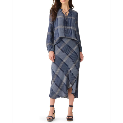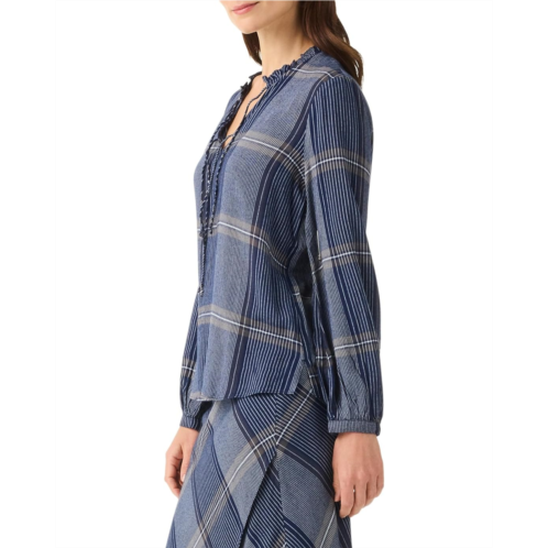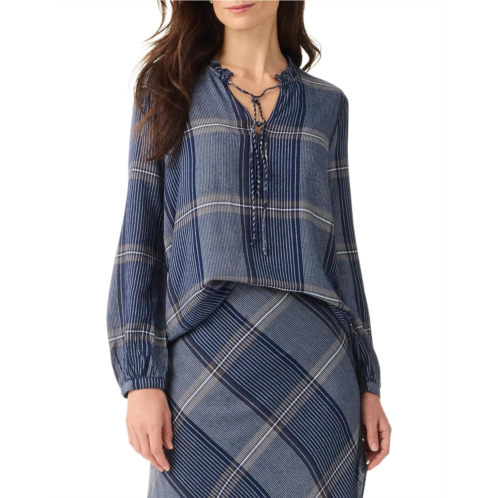 Whether it's a casual outing or a professional setting. NIC+ZOE Line It Up Top, a must-have for trendsetters! Embrace effortless chic in this printed, woven pullover, boasting a regular fit for comfort and a split neck for modern flair. Its long sleeves with elasticized cuffs offer versatility, while the ruffle band collar adds a touch of sophistication. Elevate any look with self-ties at the neckline, perfect for personalized styling.