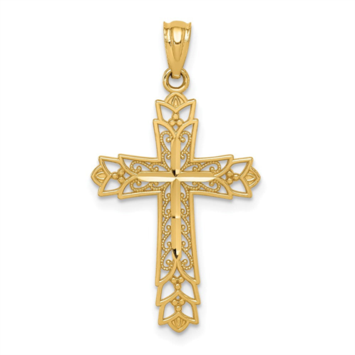 [US] Diamond2Deal 14k yellow gold polished filigree cross pendant