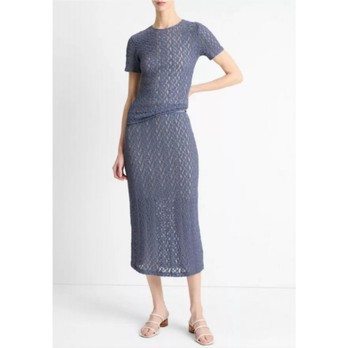 Show off just the right amount of skin in this beautifuly designed midi length skirt.Introducing the Floral Smocked Midi Skirt by Vince, a perfect addition for your spring collection in a delicate Mauve Thistle hue. This women’s skirt is crafted from a sheer floral smocked lace with a comfortable elasticized waistband, ensuring a flawless fit. Its composition includes 49% Nylon, 48% Cotton, and 3% Spandex, and it is half lined with 95% Lyocell and 5% Spandex for a tastefully subtle reveal. Measuring 29.5' in length, this imported piece is easy to maintain with a pull-on closure and requires hand washing, line drying, or optional dry cleaning.