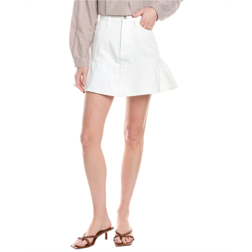 Introducing the 7 For All Mankind Peplum Mini Skirt, a stylish addition to your wardrobe. This white denim skirt features belt loops, classic five-pocket styling, and a flattering peplum hem. The skirt measures approximately 16.5 inches from waist to hem and is designed to enhance your silhouette. Made from 100% cotton, this skirt is easy to care for with a simple machine wash. Elevate your outfit with this versatile piece from a denim icon.