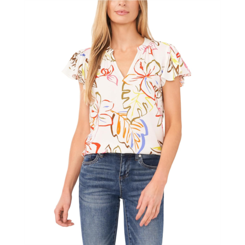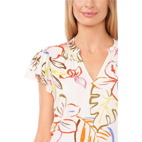 The CeCe V-Neck Shirred Flutter Sleeve Blouse is all about graceful charm with a modern twist. Designed with a flattering V-neckline and delicate shirring at the front seam, this top delivers a soft, romantic silhouette that's elevated by fluttery ruffled sleeves. Crafted from breathable, printed challis fabric, it drapes like a dream and feels featherlight all day long. The pull-on style and classic fit make it an easy, no-fuss option for everything from work meetings to weekend brunches.