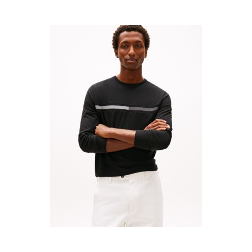 Tommy Hilfiger men's T-shirt. Made from premium cotton, this classic long-sleeve crewneck tee features a tonal play on our embroidered flag logo at the chest.