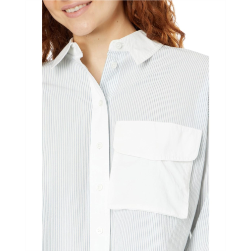 Featuring a vertical striped print all over, get ready for work or a business meeting by wearing the Madewell Flap-Pocket Crop Button-Up Shirt in Poplin. The breathable and lightweight cotton fabric of the shirt takes your comfort to the next level. This striped shirt features a front buttoned closure that offers a secure fit. Flaunt your great style and fashion sense by wearing this button-down shirt.