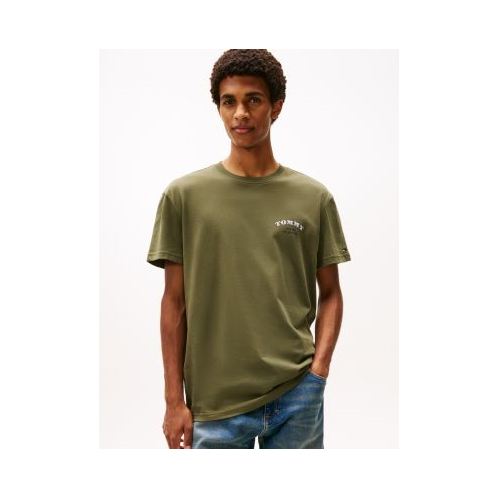 Tommy Hilfiger men's T-shirt. Featuring a retro distressed repeat logo on the back, this textured, dry-carded jersey tee has a slightly fuzzy, soft feel. The breathable cotton weave keeps you cool and comfortable all day. Part of our Tommy Jeans collection.