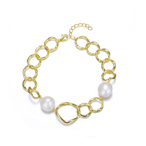 [US] Genevive sterling silver 14k gold plated with genuine freshwater pearl chain bracelet