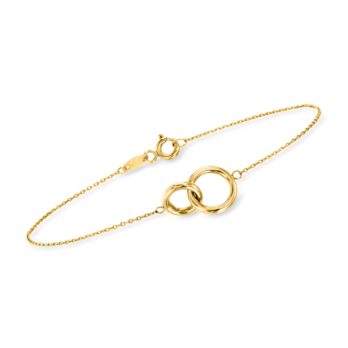 Ross-Simons is the authority on luxury classics.RS Pure. Modern designs that complete your outfit and complement your personality.Simple and chic! Our 14kt yellow gold bracelet features interlocking circles on a dainty cable chain. Springring clasp, 14kt yellow gold circle bracelet. Each Ross-Simons item arrives in a fine jewelry presentation box. Shop Ross-Simons jewelry risk-free as all items include a 30-day, 100% money-back guarantee.