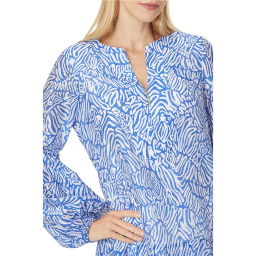 Exude style and elegance wherever you go wearing Lilly Pulitzer Laurelie Top. Crafted in an easy-fit silhouette, the popover top features a zip front notch neckline with gold puller, long unlined puff sleeves, and chic allover printed details.