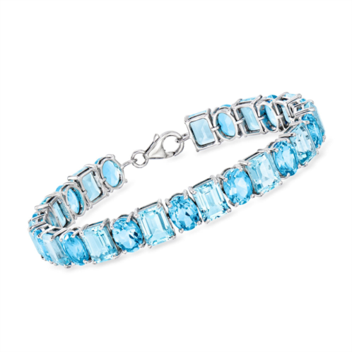 Established in 1952, Ross-Simons presents contemporary styles with a timeless appeal. An RS exclusive. Our sparkling bracelet is a vision in blue. Serene ocean-hued gems of 25.00 ct. t.w. emerald-cut sky blue topaz and 20.00 ct. t.w. oval Swiss blue topaz are scintillating in sterling silver settings. Finishes with a lobster clasp, blue topaz bracelet. Each Ross-Simons item arrives in a fine jewelry presentation box. Shop Ross-Simons jewelry risk-free as all items include a 30-day, 100% money-back guarantee.