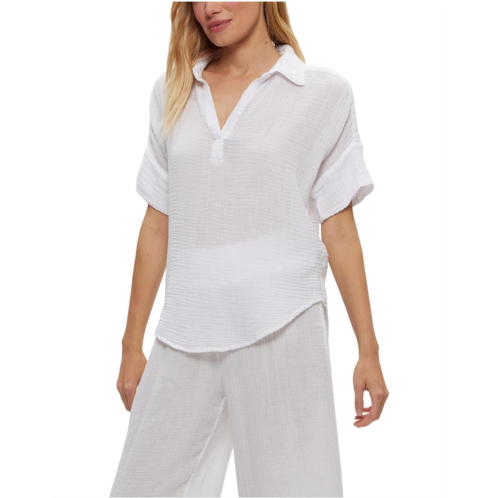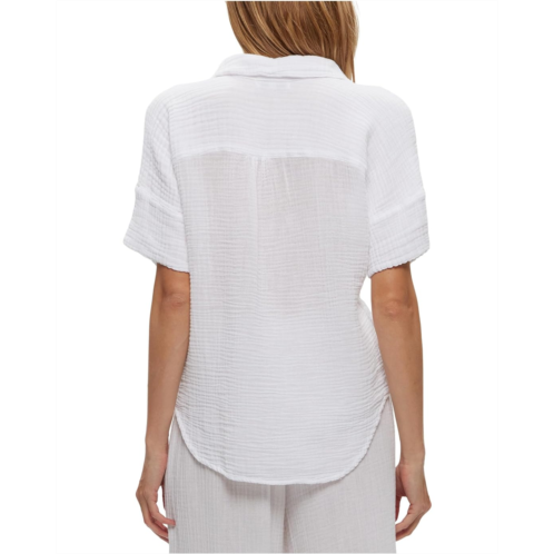 Keep things super relaxed yet stylish on your off-duty days by pairing up with the Michael Stars Gigi Popover Top. Designed in a lightweight, breathable, and textured gauze fabric, the top looks classy with its collared neck, short rolled sleeves, and a raw edge shirttail hem.