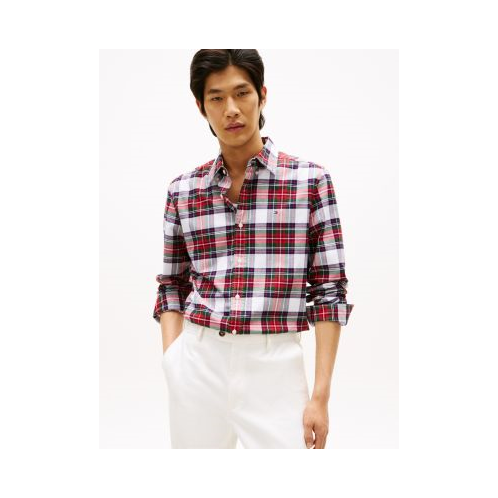 Tommy Hilfiger men's shirt. Shirting made with Oxford cloth is breathable and durable. Our version is made from organic cotton with a hint of stretch and finished in a seasonal plaid print.