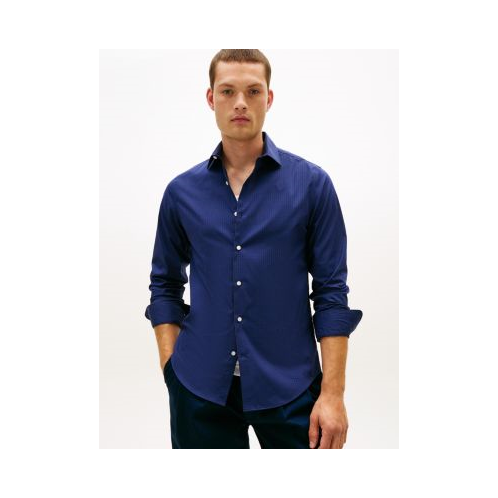 Tommy Hilfiger men's dress shirt. Ideal for the office, our long-sleeve mini check print shirt is made from cotton twill blended with THFlex fibers for extra stretch and structure.
