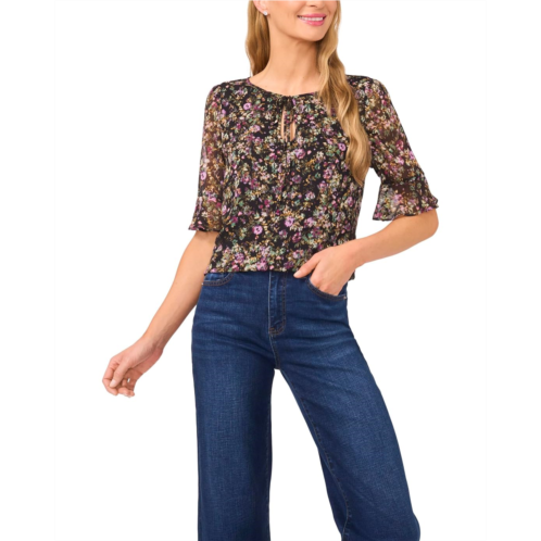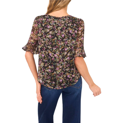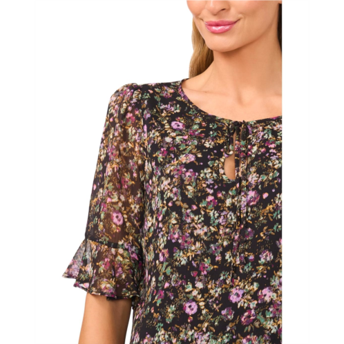 [US] CeCe Split Tie Neck Ruffle Cuff Top