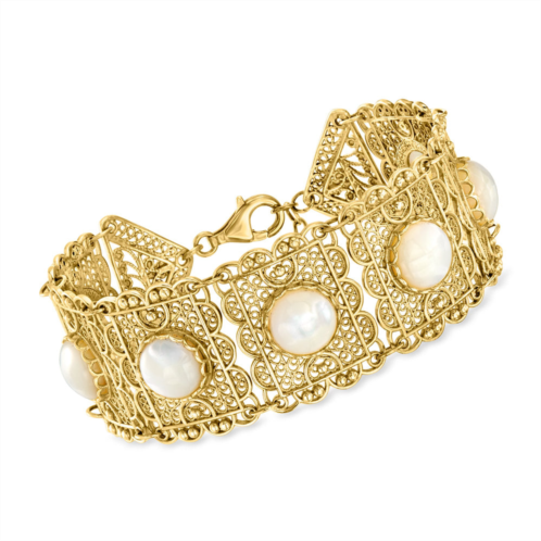 [US] Ross-Simons mother-of-pearl filigree panel bracelet in 18kt gold over sterling