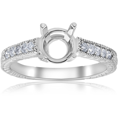This classic womens hand engraved engagement semi mount ring features 10 round brilliant cut natural diamonds. All diamonds are set in solid 14k white gold. 1/5ct total diamond weight.