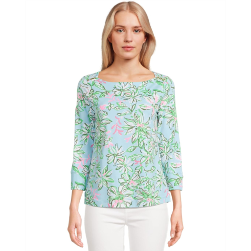 The Lilly Pulitzer Callison UPF 50+ Top is your go-to for breezy, stylish protection. Crafted with UPF 50+ fabric, this pullover shields you from harmful UV rays while keeping you cool and confident. The boat neckline and straight fit create a timeless, polished look, while the 3/4 sleeves offer the perfect balance of coverage and breathability. Designed to fit snugly at the chest and hip with a relaxed feel at the waist, this regular-fit beauty moves with you from sunny strolls to seaside brunches.