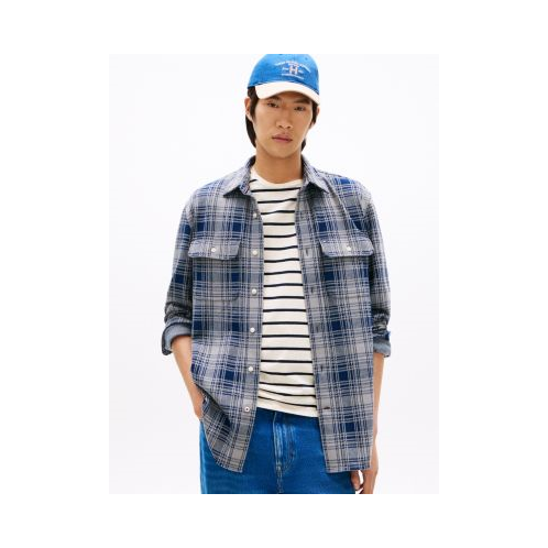 Tommy Hilfiger men's shirt. This button-up is made from a cotton-blend knit that feels exceptionally soft. Designed in a seasonal plaid, it's the one you'll wear for rustic getaways or low-key city nights.