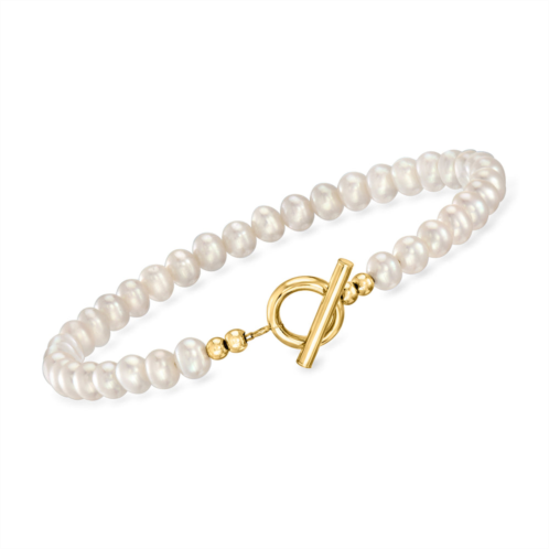 Ross-Simons is always looking for new ways to reinvent essential jewelry styles.RS Pure. Modern designs that complete your outfit and complement your personality.A classy minimalist must-have, our dainty bracelet gleams with 4-5mm cultured freshwater oval pearls that meet in the middle at a chic toggle clasp centerpiece. Featuring 14kt yellow gold. White pearl toggle bracelet. Each Ross-Simons item arrives in a fine jewelry presentation box. Shop Ross-Simons jewelry risk-free as all items include a 30-day, 100% money-back guarantee.