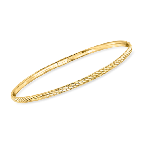 Established in 1952, Ross-Simons brings jewelry classics into the modern era.RS Pure. Modern designs that complete your outfit and complement your personality.A dainty take on a classic style, this 14kt yellow gold ribbed bangle bracelet was born for simple stacking. Made in Italy. Slip-on, 14kt yellow gold ribbed bangle bracelet. Each Ross-Simons item arrives in a fine jewelry presentation box. Shop Ross-Simons jewelry risk-free as all items include a 30-day, 100% money-back guarantee.
