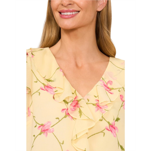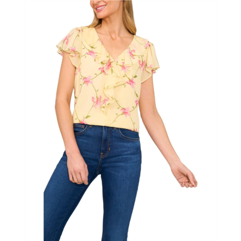 Embrace effortless femininity wearing the CeCe Ruffle V-Neck Flutter Sleeves Flowy Top. The pull-on style top features a flattering ruffled V-neck, short & delicate ruffled flutter sleeves, an allover floral print, and a straight hem. Ideal for both casual days and dressy nights, its lightweight fabric ensures comfort without compromising style.