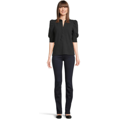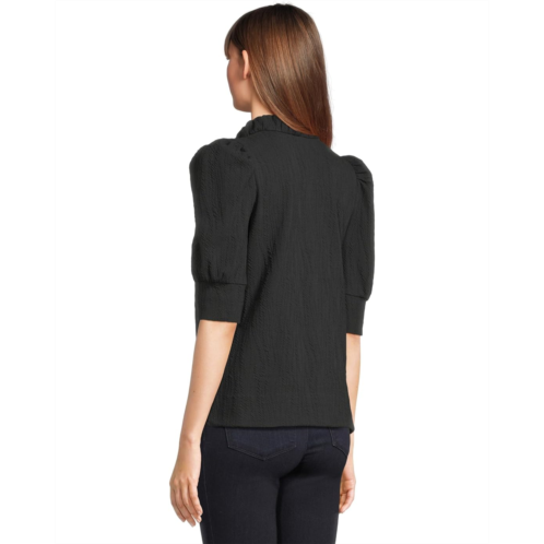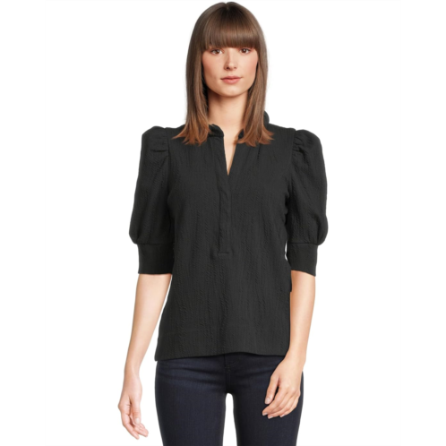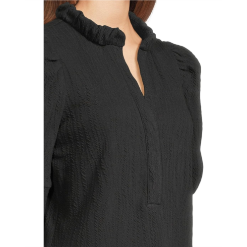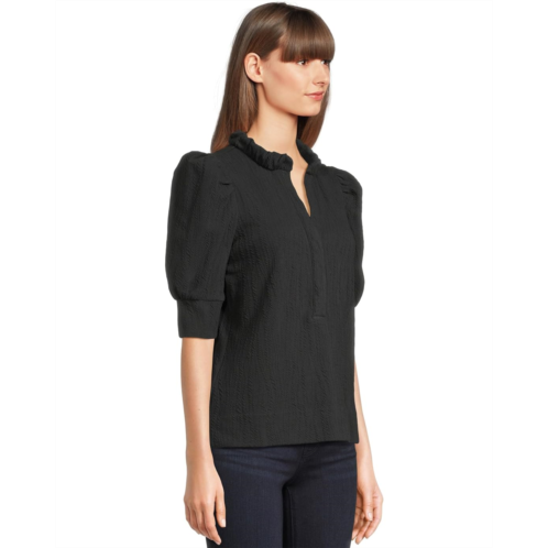 Make a statement in the Lilly Pulitzer Elsey Knit Top. This straight fit top features a ruffle collar, a half placket with hidden snap closure, hem vents and elbow length puff sleeves with cuffs. The classic fit makes for a perfect pairing to your favorite pants or skirt for an effortless look.