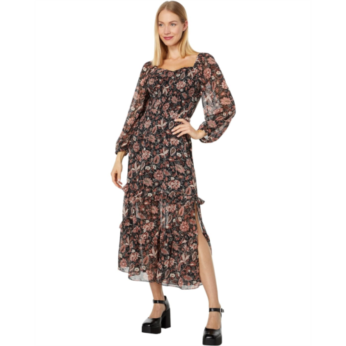 Layered ruffle maxi skirt design.