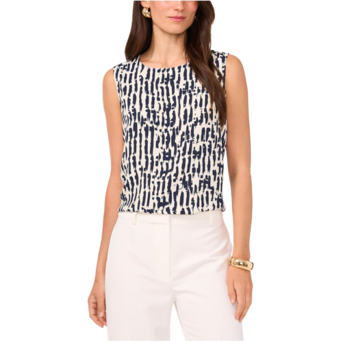 Be it a casual outing or a formal event, the Vince Camuto Crew Neck Tank Blouse offers an effortless style along with versatility. The crew neckline and sleeveless silhouette complement an allover print design with a fishhook and button closure on the back.
