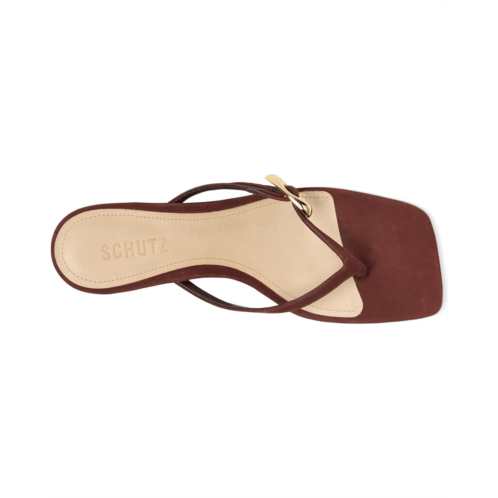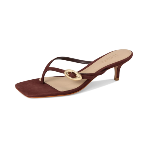 - The Schutz Miriam is a kitten stiletto mule sandal featuring shiny buckle hardware for a refined, modern finish. This elegant slip-on boasts an open square toe silhouette.